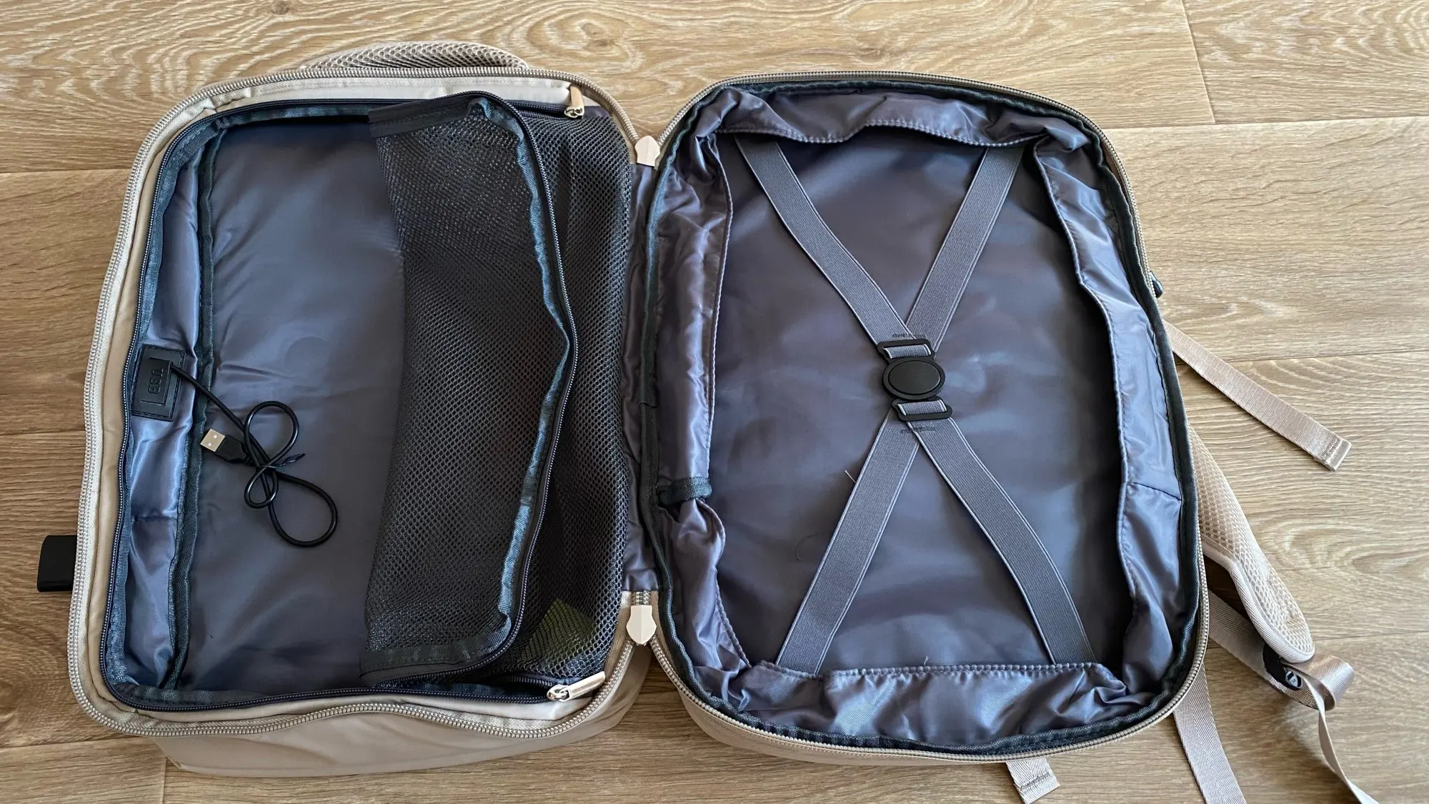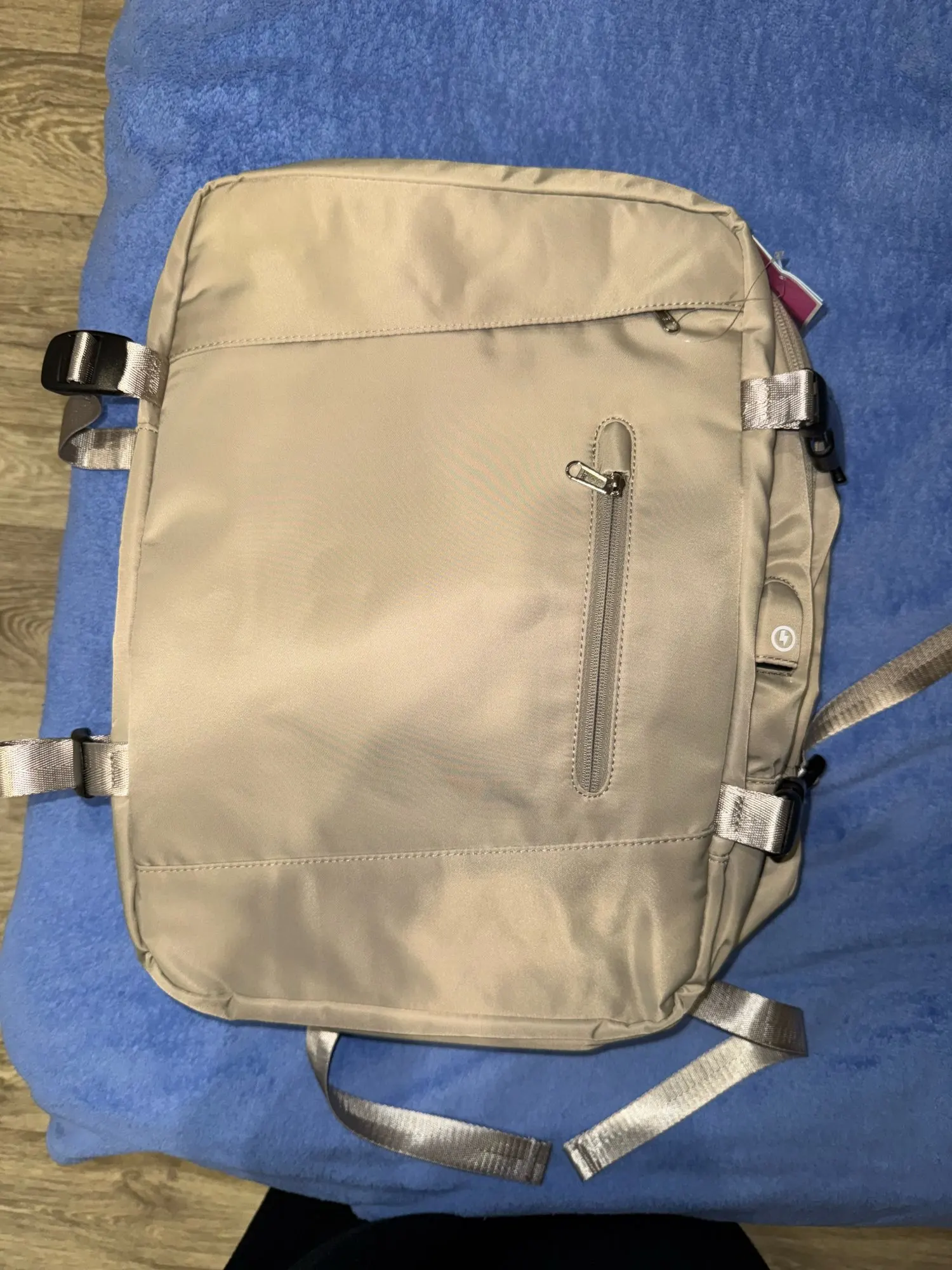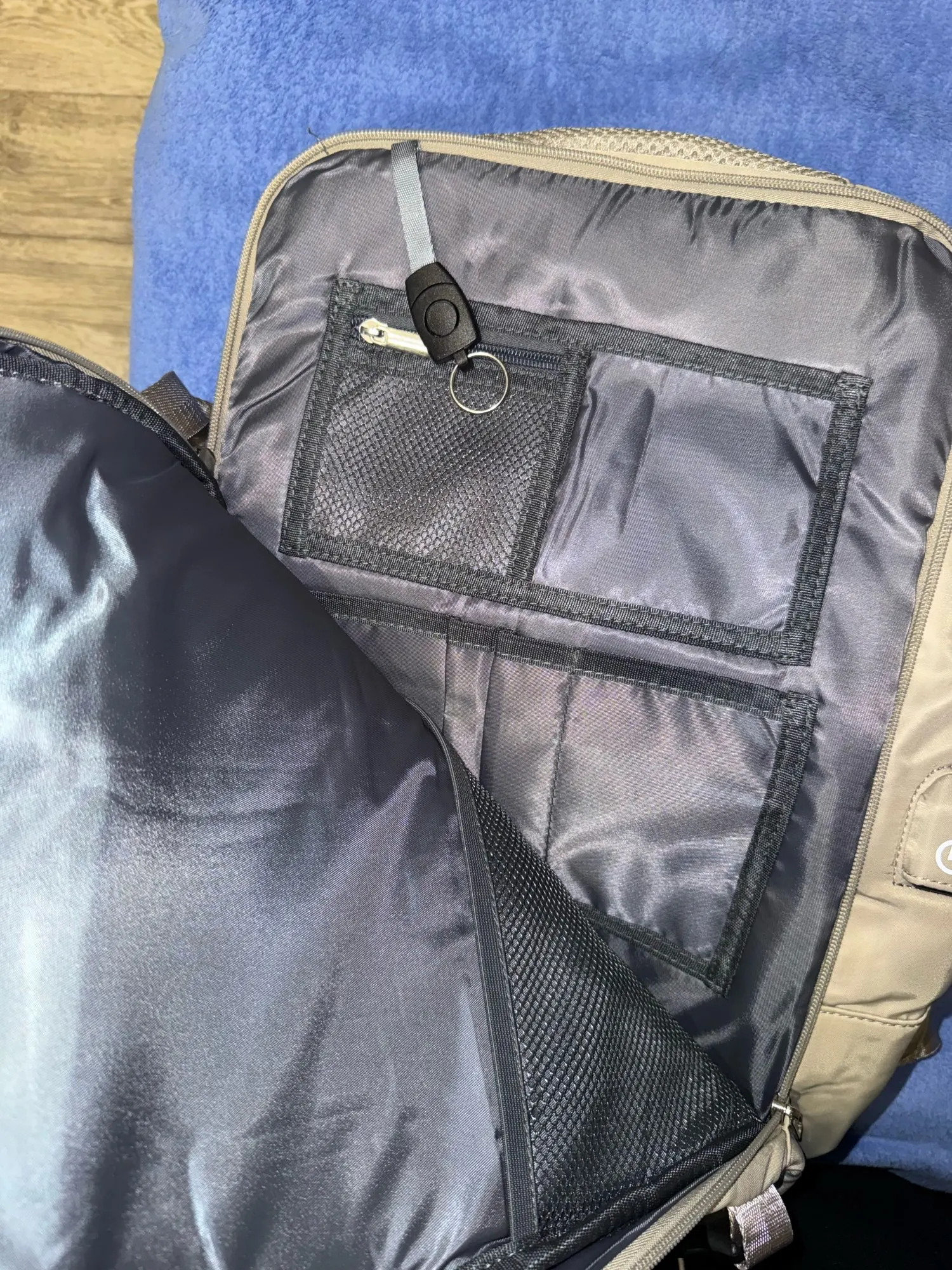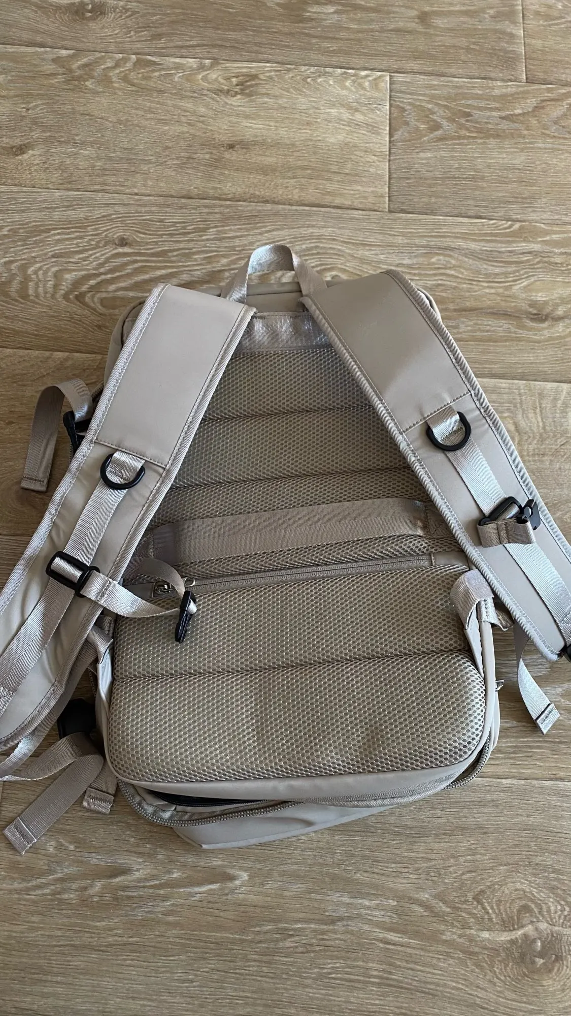 I returned this backpack. This backpack came with all the slots and compartments i wanted and needed, but the straps were too wide and not cushioned enough to be comfortable for me.