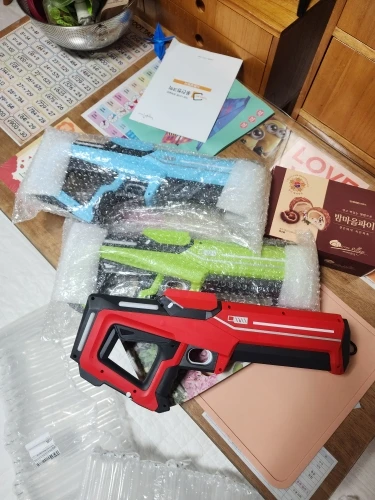 The delivery was fast, and I am satisfied with the product quality for the price. I ordered both blue and green, but the green product has a weak water absorption function and the absorbed water leaks back out. And since it's for children, the water spray is weak and doesn't go very far.